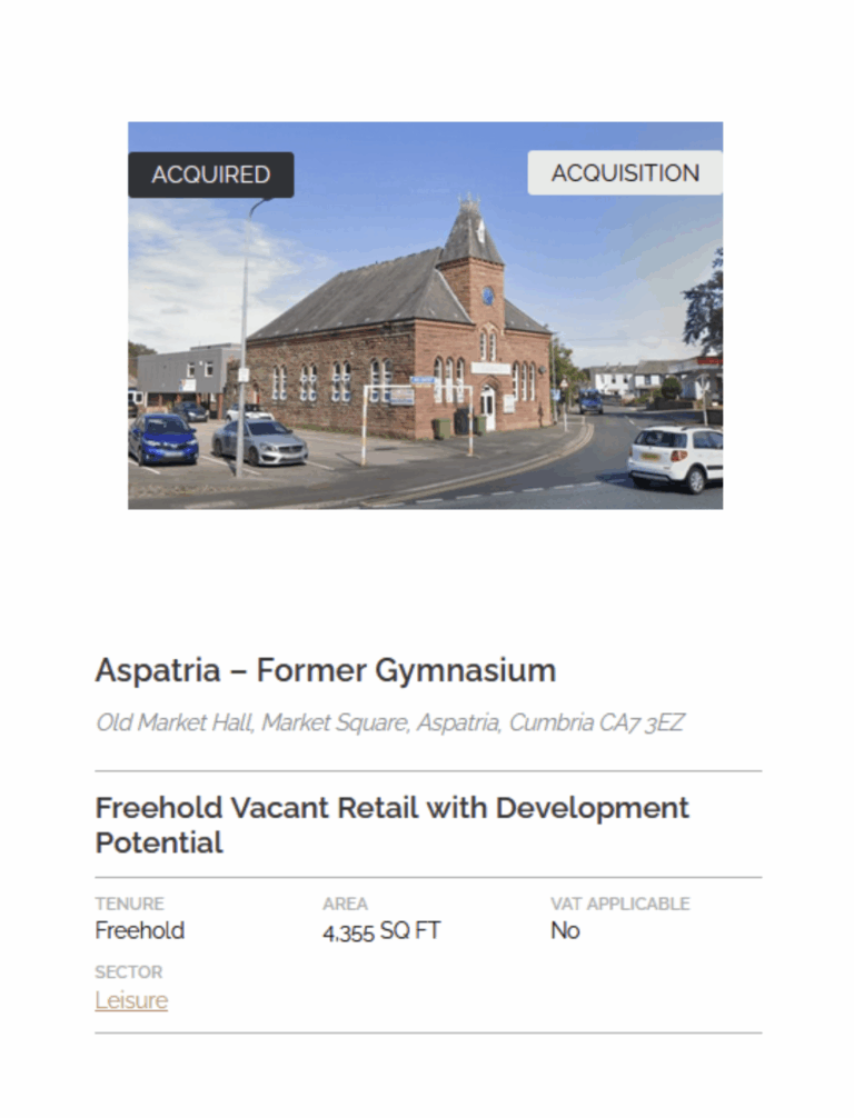COMPLETED SALE – Old Market Hall, Market Square, Aspatria, Wigton CA7 3EZ
