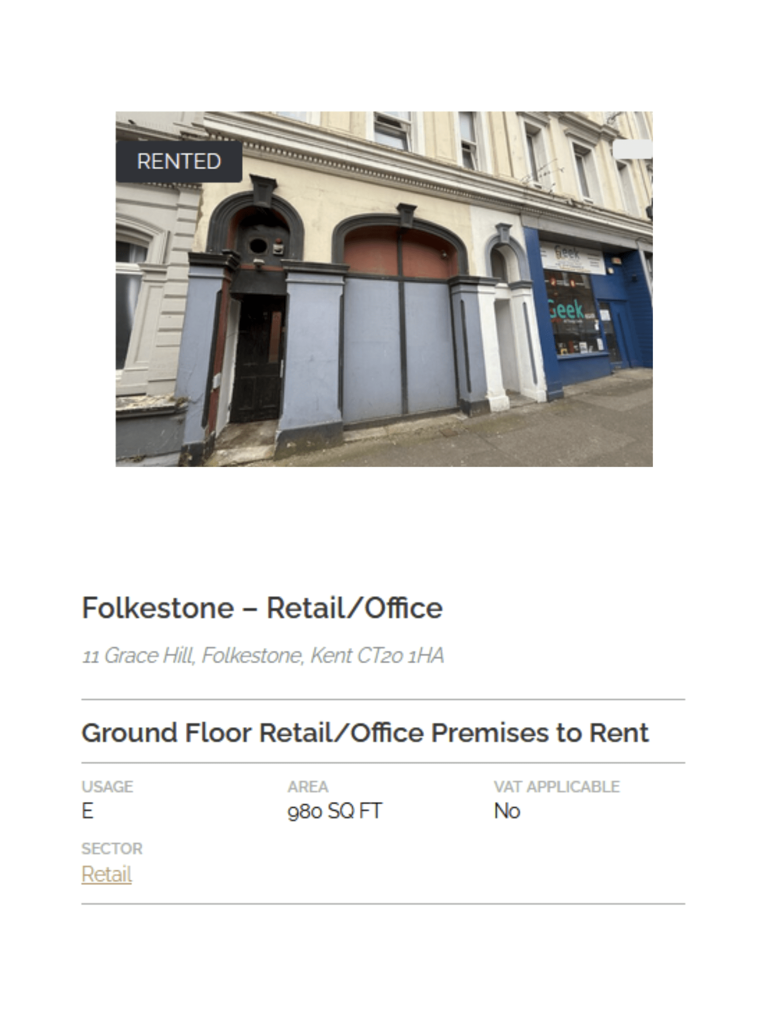 - Comprises large ground floor retail or office premises