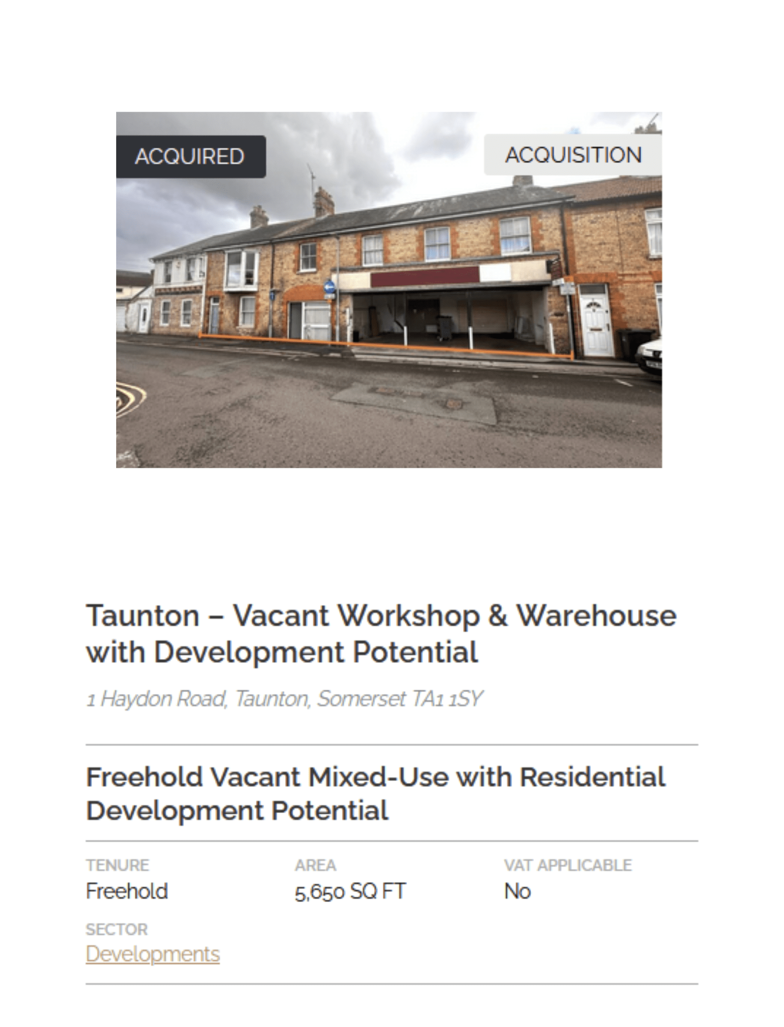 COMPLETED SALE – 1 Haydon Road, Taunton, Somerset TA1 1SY