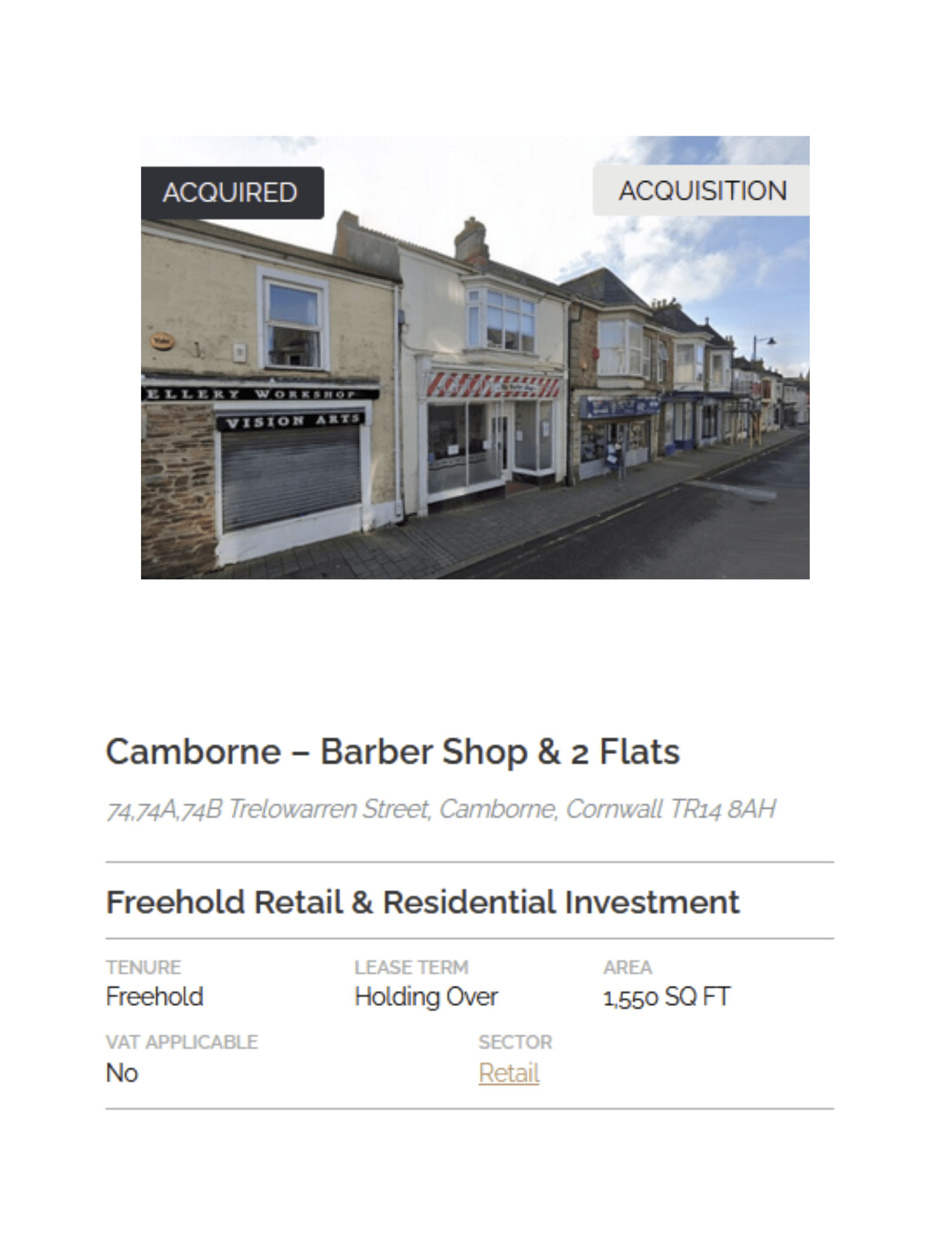 COMPLETED SALE – 7474A74B Trelowarren Street, Camborne, Cornwall, TR14 8AH