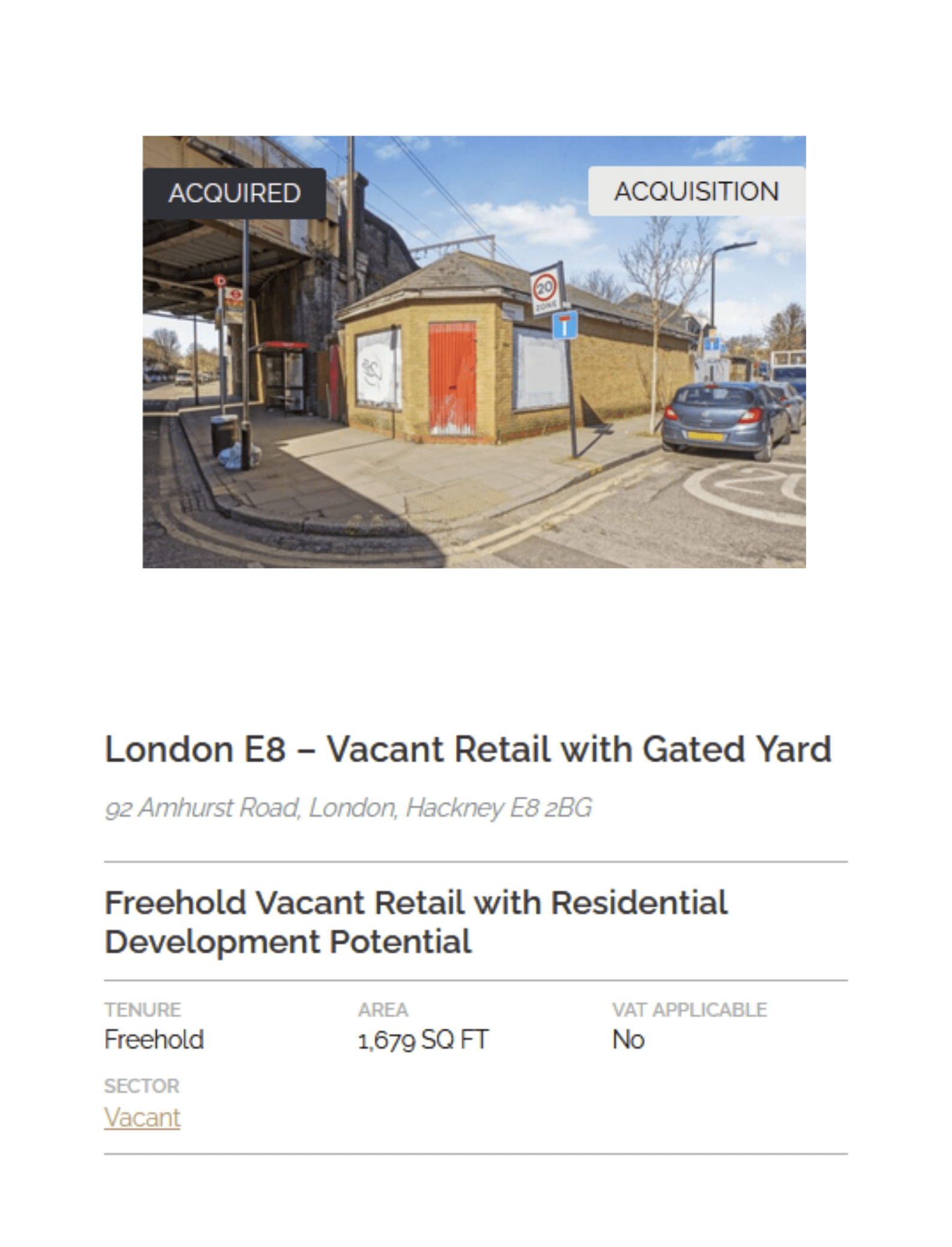 COMPLETED SALE – 92 Amhurst Road, Hackney, London E8 2BG