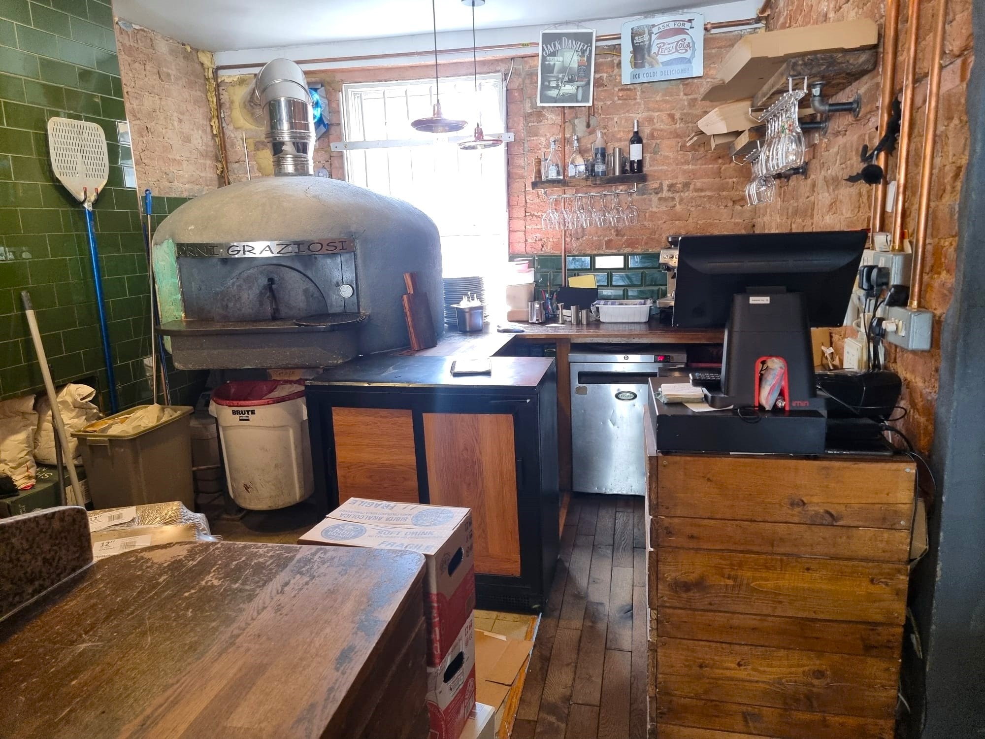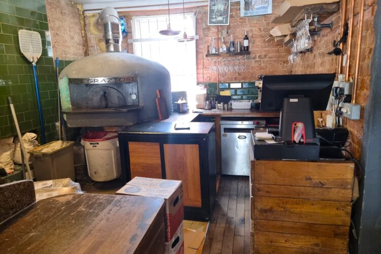 Comprises ground floor restaurant/pizzeria with additional seating at front and covered courtyard at rear, providing the following accommodation and dimensions: