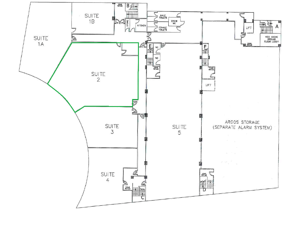 Comprises first floor open plan office suite, with shared kitchen and wc, providing the following accommodation and dimensions: