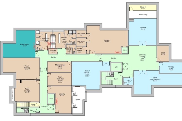 Gym/Yoga, Hair and Beauty Salon, Cinema, Therapy Suite, Plant Room