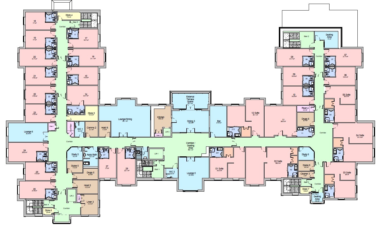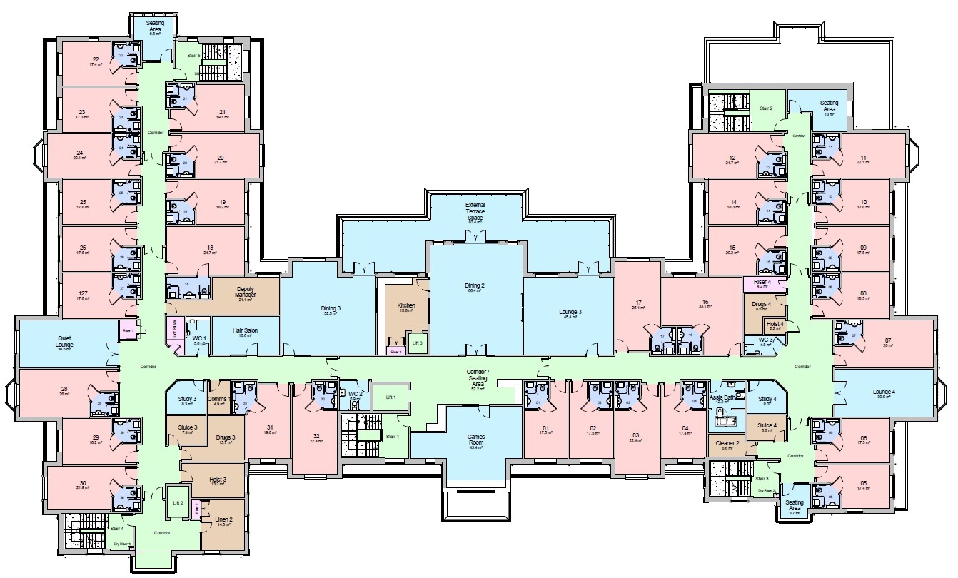 Dining Rooms, Lounges, Hair Salon, Games Room, Study Room, External Terrace