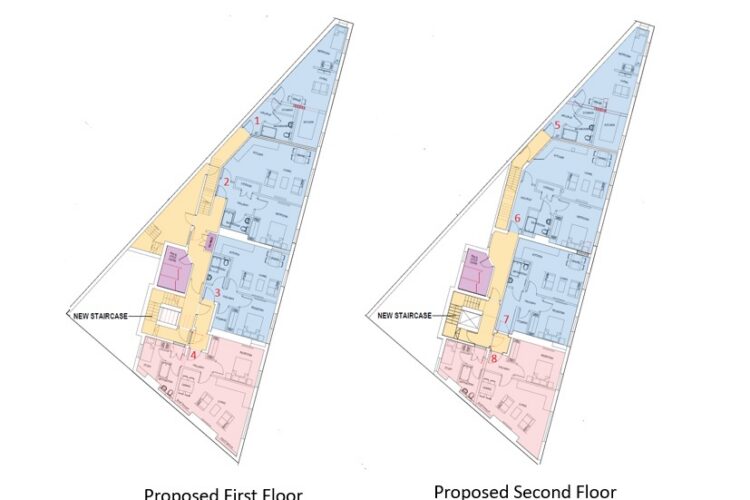 Prior approval granted for conversion of existing first and second floor offices into 8 x 1-bed apartments (2 apartments have study room), providing the following accommodation and dimensions: