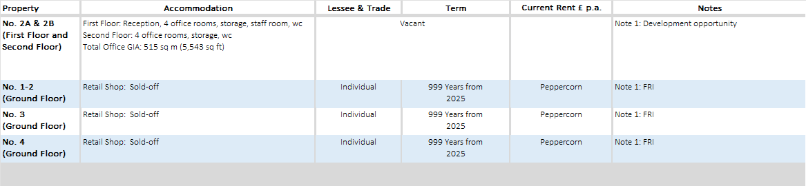 The 3 ground floor shops No.3 has been sold-off on long leasehold for a term of 999 Years at ground rent of peppercorn.