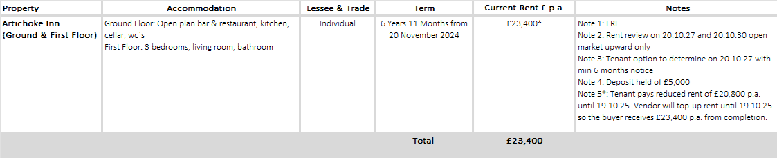 *Tenant pays reduced rent of £20,800 p.a. until 19.10.25. Vendor will top-up rent until 19.10.25 so the buyer receives £23,400 p.a. from completion.