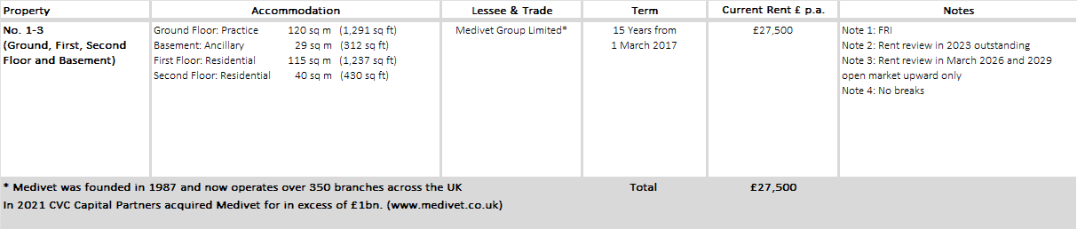 - Entirely let to Medivet Group until 2032 (no breaks) Rent review every 3rd year.